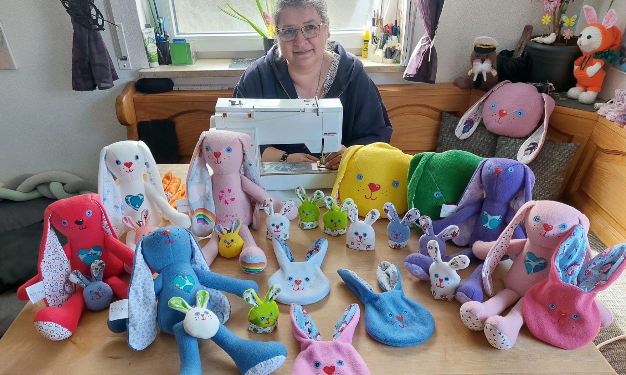 Heute ist Dunja unsere Näherin und fertigt mit viel Sorgfalt und Liebe jeden einzelnen Emma-Hasen.